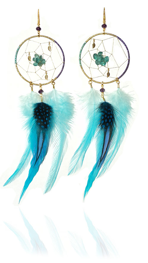 DREAMCATCHER 24ct Gold-plated earrings with Apatite and Amethyst stones,